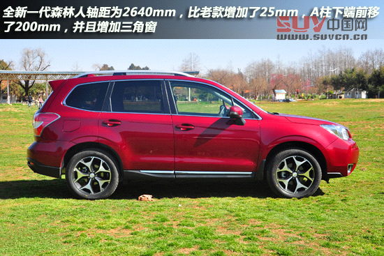 全新一代森林人軸距為2640mm,比老款車型增加25mm。A柱下端進行了前移了約200mm,并且增加三角窗,這樣的設計是為了加大視野,減小盲區。據廠家介紹,這一設計使得A柱的盲區減小11度,大大加強了行車時的主動安全性。