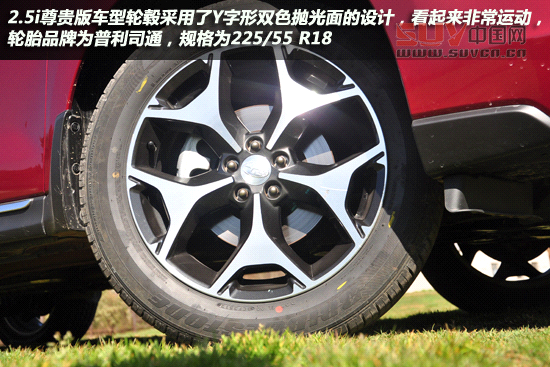 新一代森林人采用的“隱藏式車門底框”,可防止乘客上下車時弄臟褲子及裙邊。2.5i尊貴版車型輪轂采用了Y字形雙色拋光面的設計,看起來非常運動,輪胎品牌為普利司通,規格為225/55 R18。