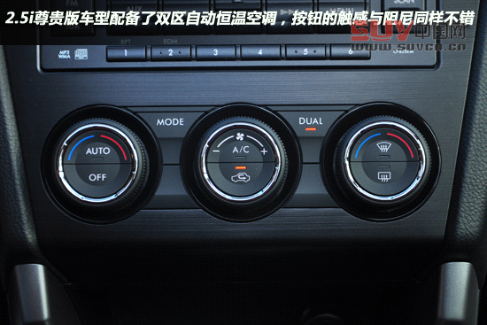 音響控制區域集中在中控臺中部,按鍵質感出眾,阻尼適中。2.5i尊貴版車型配備了雙區自動恒溫空調,按鈕的觸感與阻尼同樣不錯,我們所試駕的2.5i尊貴版車型還配備一鍵啟動以及前排座椅加熱功能。