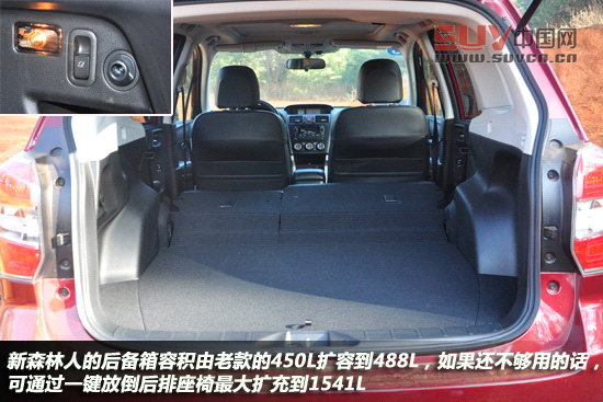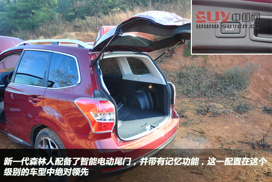 斯巴魯給全新森林人裝備了電動后尾門,這在同級別、同價位車型中是相當少見的配置??赏ㄟ^遙控鑰匙或者后備箱門與駕駛席左側的開關進行開啟或關閉,另外它還具備“MEMORY HEIGHT”高度記憶功能,為身材嬌小的使用者提供方便。