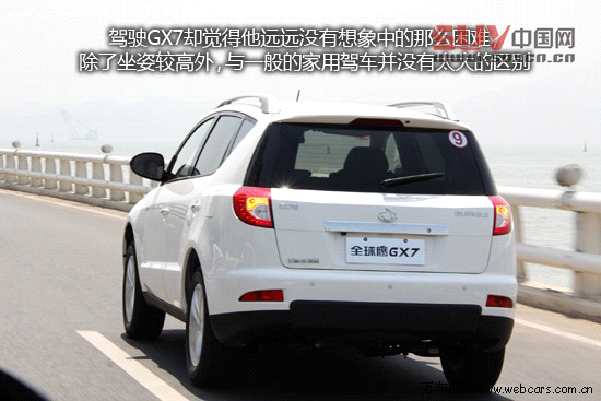 透過廠方這次安排的試駕活動,讓我能近距離的去感受這部全新的GX7,雖然目前只有1.8L的發動機選擇,介于城市化的定位,我想這1.8L發動機應該能應付日常的駕駛需要,這款帶有CVVT技術的1.8L發動機啟動后,感覺運轉較為平順,不過油門踏板有些輕,在沒有心理準備的前提下,用習慣性的力度去觸碰油門踏板,發動機來了一次粗暴吼叫,之后轉為柔和的方式駕駛GX7卻覺得他遠遠沒有想象中的那么難以駕馭,但提速的線性感總體而言還是比較溫柔,除了坐姿較高外,其城市SUV定位確實與駕駛一輛家用轎車區別不大,好開易上手。