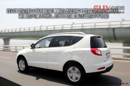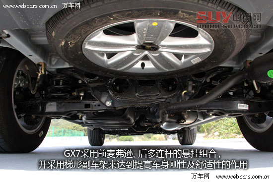 既然不是追求四驅性能的SUV,必然會在城市化的駕乘感上下功夫,GX7采用前麥弗遜、后多連桿的懸掛組合,并采用梯形副車架來提高車身剛性及提高舒適性的作用,在試駕的過程中我們能很清晰的感覺到GX7的底盤是相當穩健的,避震特性則有些剛中帶柔,但偶爾也要注意175mm的離地間隙及1700mm的車身高度對動態的影響,如遇彎道不提前減速,車身依然會出現較為明顯的側傾,假如減速進彎后待車身擺正,再降檔加速,可以察覺到變速器與發動機的配合是多么的合拍,整個過程相當線性,這也是通過手動變速器與GX7溝通的最好方式,但我并不太滿足于這樣的表現,就GX7這副高剛性車身而言,現有的1.8L發動機只能算是GX7車系的一道開胃菜,想要窺探GX7性能的底線,日后追加的2.0L及2.4L動力必然是明智之選。