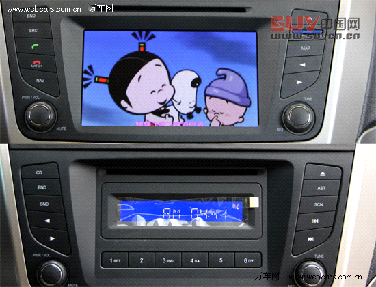 【上方的頂配車型與下方低配車型比較,增加了DVD、導航、藍牙及SD卡功能】