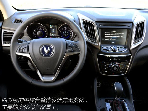 四驅版在舒適配置上的提升是顯而易見的了,不過還是有兩處用戶特別關心的地方維持了原狀:前中控臺依然是硬塑料材質以及全景天窗依然未能出現。長安的領導表示這兩處也已經在改進過程中了,只是沒能趕上這次四驅版一起推出。沒關系,好在這次還增加了不少電子輔助安全配置和全新的車載多媒體系統。