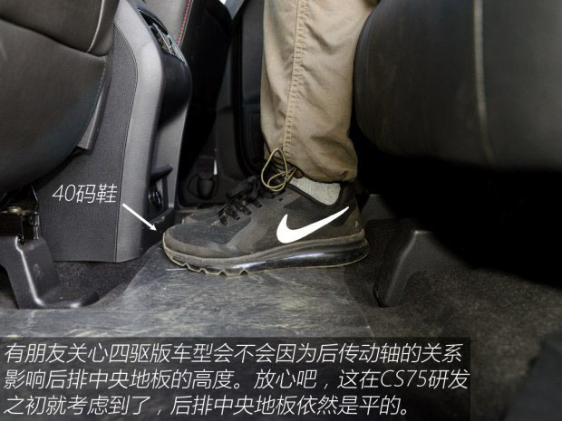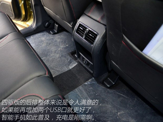 各種配置的提升固然能獲得消費者的好感,然而四驅版車型是否會因為傳動軸的關系影響后排中央的腳部空間?這是很多四驅版潛在用戶都很關心的問題,下面的圖片給出了答案。