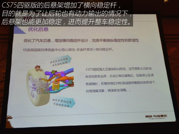 CS75四驅版最早亮相是在今年4月的上海車展,當時除了知道四驅系統來自于博格華納之外,并沒有關于四驅版的更多細節。直到我們在試駕會之前收到了包含有四款車型的四驅版詳細配置單,我才明白這次推出的四驅版并不僅僅只是增加了一套四驅系統這么簡單,而是在發動機變速箱、底盤以及大量配置方面,都與之前推出的兩驅版本都有不少區別。