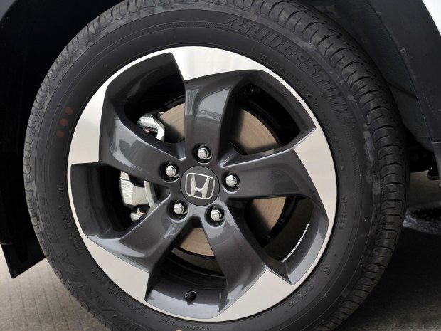 與精英型相比,先鋒型采用了17英寸的熏黑鋁質輪圈,造型更加動感。它所配備的輪胎來自普利司通泰然者系列,規格為215/55 R17。至于備胎,它配備的是非全尺寸。
