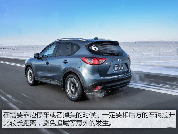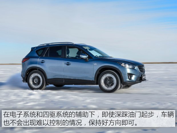 對于配備有車身穩(wěn)定系統(tǒng)(ESC)和牽引力控制系統(tǒng)(TCS)的車輛來說,這種情況就不必太過擔(dān)心,電腦會自動對動力進(jìn)行適當(dāng)?shù)南拗坪驼{(diào)整。所以我們駕駛CX-5的時候,不用擔(dān)心起步階段會出現(xiàn)問題,即使是全油門起步,車輪出現(xiàn)明顯空轉(zhuǎn)的情況下,我們都能輕易控制車輛前進(jìn)的方向,順帶還能揚起一陣雪花。