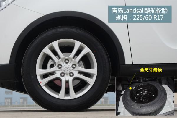 新圣達菲配備的是青島Landsail路航輪胎,比較少見的品牌,規(guī)格是225/60 R17。另外,值得一提的是它配備了全尺寸備胎,很厚道。