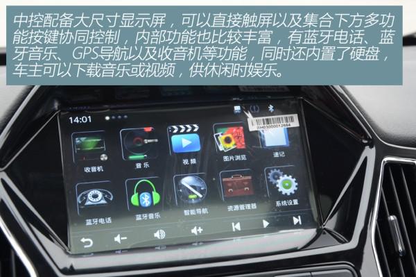 中控配備大尺寸顯示屏,可以直接觸屏以及集合下方多功能按鍵協(xié)同控制,內部功能也比較豐富,有藍牙電話、藍牙音樂、GPS導航以及收音機等功能,同時還內置了硬盤,車主可以下載音樂或視頻,供休閑時娛樂。