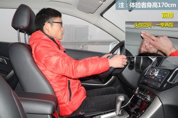 體驗者身高170cm,坐在前排頭部有一拳兩指的空間。