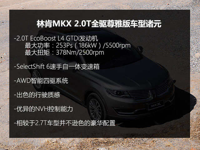 當然同樣的發動機本體為了對應不同的品牌、驅動形式和車型定位,自然也存在不同的調校,因此我們除了會重點考量MKX 2.0T全驅尊雅版在動力儲備的方面,也會在日常駕駛感受部分與您分享這款車在平順性以及動力系統的輸出特性。