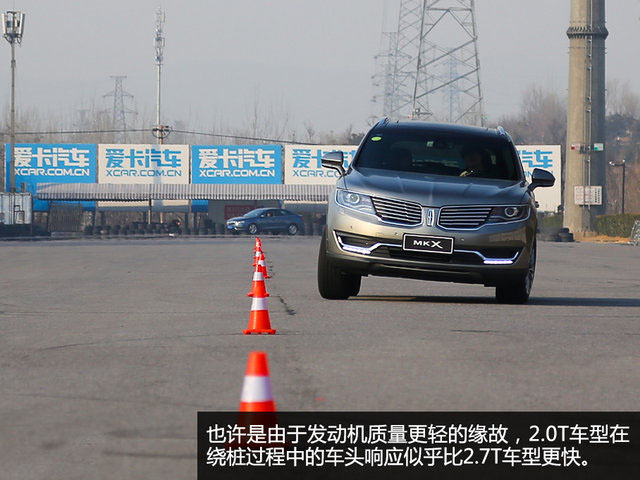 也許是由于發動機質量更輕的緣故,2.0T車型在繞樁過程中的車頭響應似乎比2.7T車型更快。與2.7T車型相比,2.0T車型更溫和的動力輸出讓車身在樁間的姿態更容易控制,走線也相對更加順滑。
