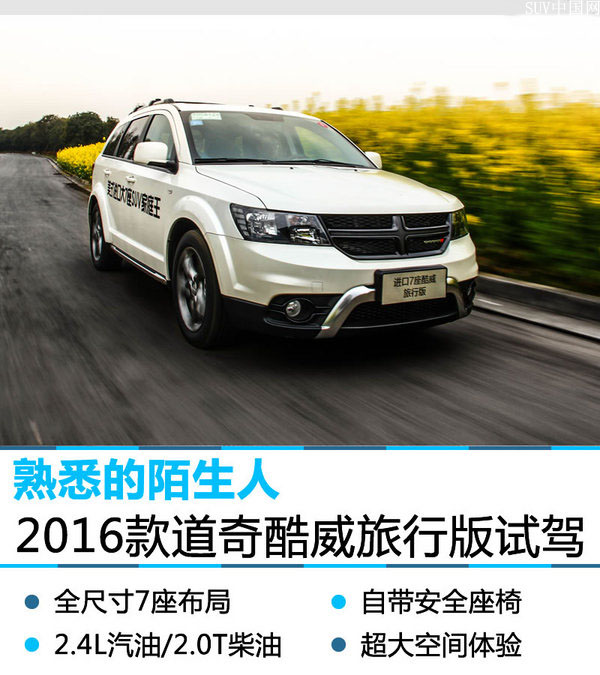 道奇酷威說起看 看似陌生,又很熟悉。其實這款早已經在7年輕打近中國市場的七座SUV當中,算是老前輩了。在這幾年當中酷威也進行過二次小改款,一次是換裝新的內飾。一次是再此基礎上推出了更加個性的旅行版的車型和動力更強的柴油版車型。而今年酷威也如大家所想的一樣,推出了2016款車型,來再一次促進市場。