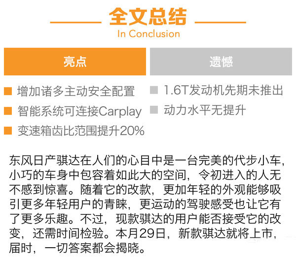 大,沒想到新款騏達(dá)仍然繼承了“小中見大”這個(gè)特點(diǎn)。在如此小巧的車身中做出這么大的空間,日產(chǎn)一直是行家里手。相信有這一點(diǎn),對于騏達(dá)的老用戶來說,就已經(jīng)難以抗拒了。但是動(dòng)力方面,1.6L自然吸氣發(fā)動(dòng)機(jī)動(dòng)力水平與現(xiàn)款無異。1.6T在先期不會(huì)推出,日產(chǎn)方面表示,還需觀察市場的反饋而決定。