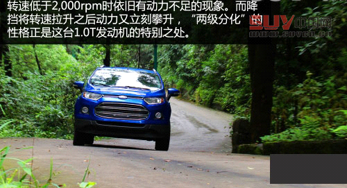 這臺1.0T EcoBoost發(fā)動機在重慶的崎嶇山路中表現得可謂“兩極分化”,盡管其參數中170Nm的最大扭矩從1,500rpm就開始全數發(fā)放,但實際駕駛中發(fā)動機需要接近2,000rpm時才開始有非常明顯的動力輸出。在這個轉速之前,翼搏1.0T的動力顯得有點孱弱,畢竟1.0L排量的低轉速扭矩依舊是短板,尤其在面對重慶非常陡峭的上坡時。