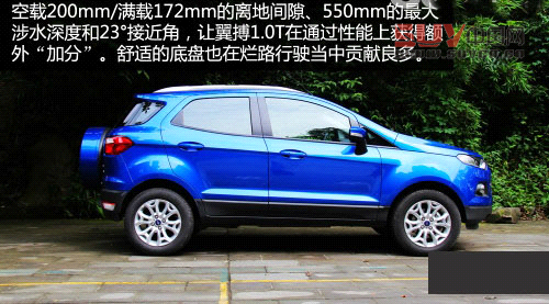 翼搏1.0T的“加分項目”是通過性能:滿載離地間隙172mm、最大涉水深度550mm以及超短前后懸?guī)磔^大的接近角和離去角都是非常突出的。尤其涉水能力,對近日普降暴雨又排水不暢的地區(qū)意義更突出。加上較為柔和、舒適的底盤在非鋪裝路面的出色表現,因此翼搏1.0T的整個通過性能和“爛路”行駛能力都足以傲視這一級別的其它車型。