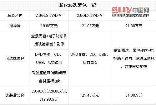 此外,為了滿足有個性化需求的消費者,新款ix35最多可提供三種原廠選裝包,本次實拍的車型選裝了價值8000元的全景天窗和電子防眩目后視鏡帶倒車影像,選裝后預售價為20.48萬元。