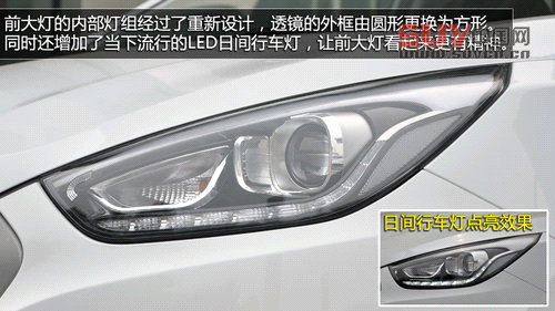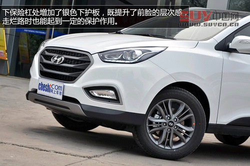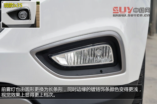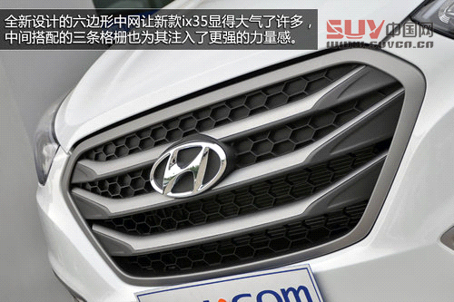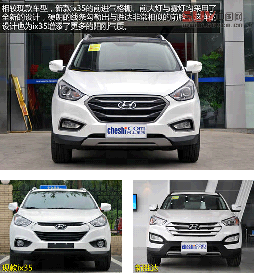 從車頭來看,新款ix35有了非常明顯的改變。相較現款車型,新款ix35的前進氣格柵、前大燈與霧燈均采用了全新的家族式設計,硬朗的線條勾勒出與勝達高度相似的前臉,這樣的設計也為ix35增添了更多的陽剛氣質。與此同時,新款ix35下保險杠處還增加了銀色裝飾板,讓前臉看起來更具層次感。