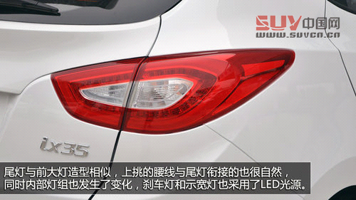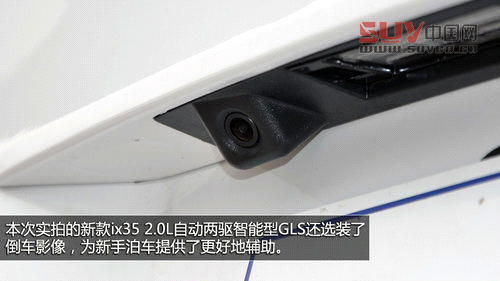 新款ix35的尾部變化同樣不大,敦實飽滿的造型讓人看起來很舒服。尾燈與前大燈造型相似,上挑的腰線與尾燈銜接的也很自然,同時內部燈組也發生了變化,剎車燈和示寬燈也采用了LED光源。本次實拍的新款ix35 2.0L自動兩驅智能版GLS還選裝了倒車影像,為新手泊車提供了更好地輔助。