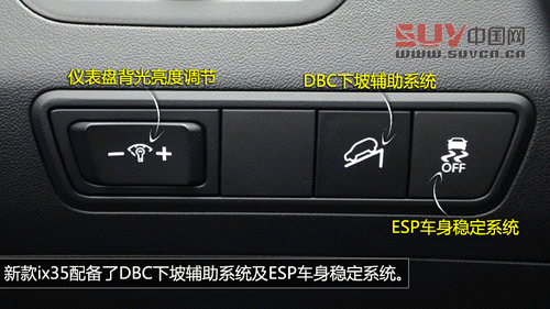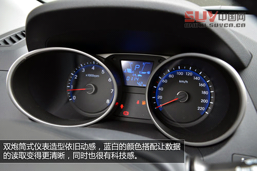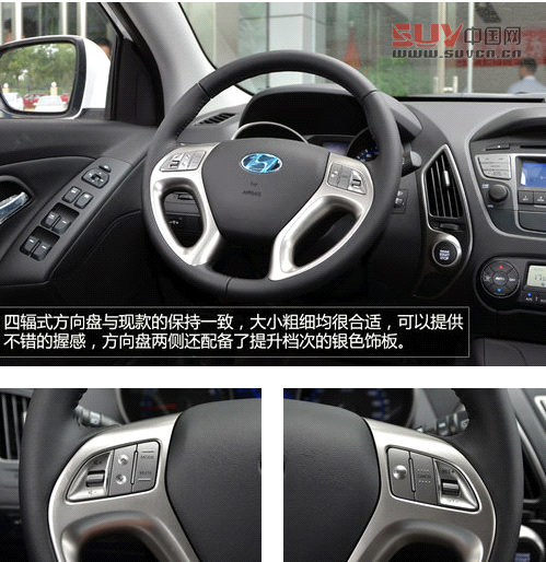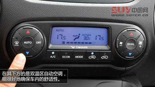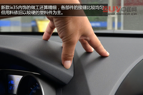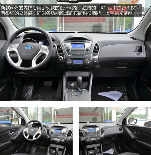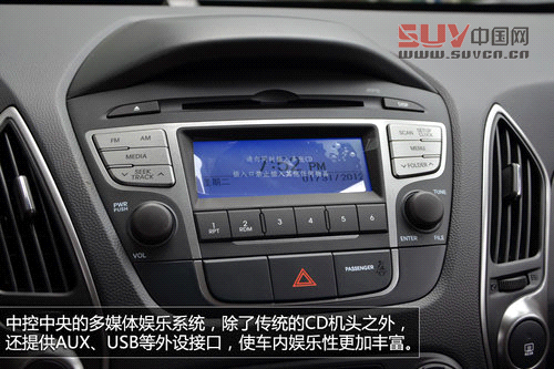 中控臺的樣式沒有任何變化,延續了現款車型簡潔大方的設計。中控中央的多媒體娛樂系統,除了傳統的CD機頭之外,還提供AUX、USB等外設接口,使車內娛樂性更加豐富。在其下方的是雙溫區自動空調,能很好地確保車內的舒適性。此外,新款ix35的做工與用料也保持了現款的水準,無論按鍵的觸感還是旋鈕的阻尼感均表現的十分出眾。