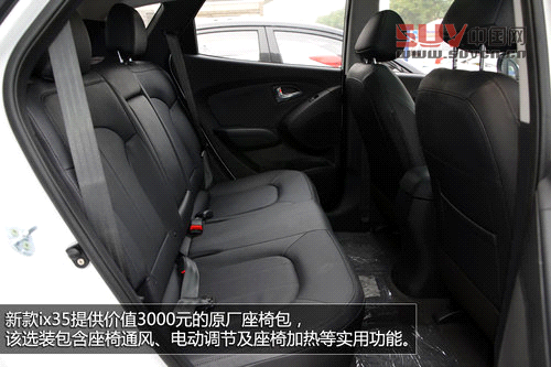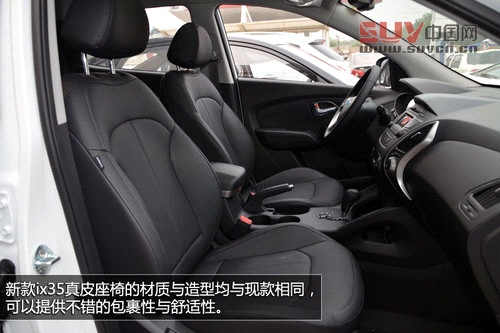 新款ix35真皮座椅的材質與造型均與現款相同,可以提供不錯的包裹性與舒適性。不過遺憾的是2.0L自動兩驅智能版GLS的座椅調節均為手動,對功能上有需求的消費者可自行選裝價值3000元的原廠座椅包,該選裝包含座椅通風、電動調節及座椅加熱等實用功能。