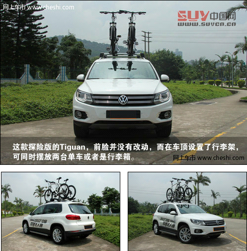 進口Tiguan的前臉銳利,上翹的前保險杠與向中網(wǎng)擠壓的大燈是的整體更具有殺氣。“探險版”的外觀與之前的版本并沒有區(qū)別,而是在車頂設置了行李架,可同時放置兩臺自行車,或者是行李箱,方便出行,更符合“探險”這個概念。