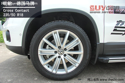進口Tiguan采用了大氣的五輻輪轂,輪胎使用了德國馬牌的Cross Contact系列的235/50 R18,該輪胎是馬牌公司為SUV車型打造的高性能SUV輪胎,擁有出色的排水槽與干地操控、制動性能。