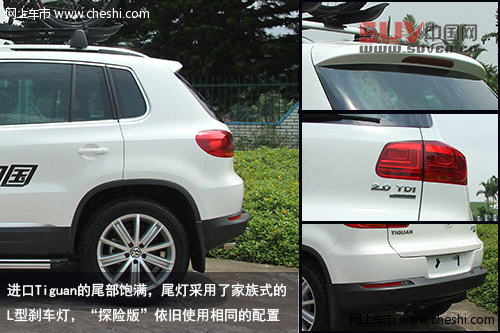 進口Tiguan后保險杠沒有配置護板,大燈則是采用了家族式的L型剎車燈,此次的“探險版”與原有的Tiguan是相同的。