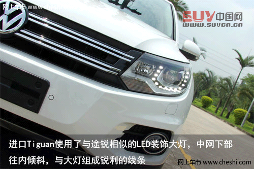 進口Tiguan上翹的前保險杠使得整體感覺更加 “硬漢”,同時前臉各個部分往中間靠攏的風格使得線條更加豐富。同時進口Tiguan再次傳承了大眾“燈光中毒”的精神,形似途銳結(jié)構(gòu)的U型LED大燈非常搶眼。