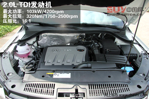 “探險版”Tiguan搭載了大眾汽車第二代2.0 TDI渦輪增壓共軌直噴柴油發(fā)動機。最大功率為103千瓦(140馬力)/4200轉(zhuǎn),最大扭矩為320牛•米/1750-2500轉(zhuǎn)。通過數(shù)據(jù)就能看出,它的中低扭絕對表現(xiàn)不俗。