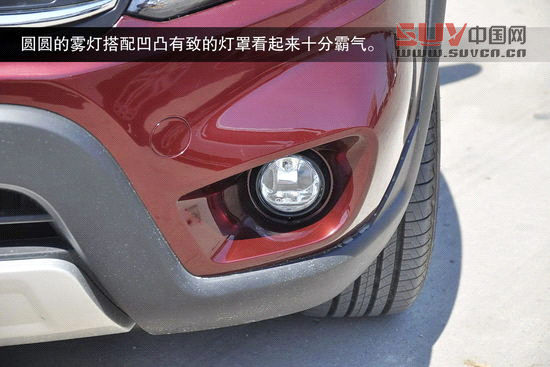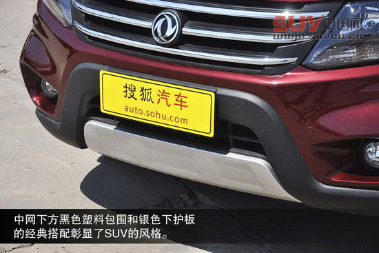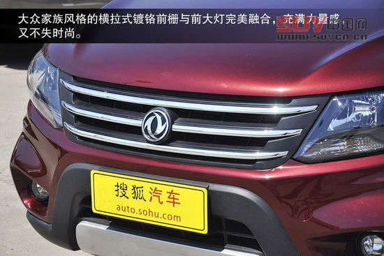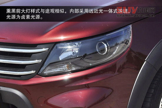 景逸X5是在景逸SUV的基礎上研發而來,流暢剛硬的線條顯得強壯有力。大眾家族風格的橫拉式鍍鉻前柵與前大燈完美融合,充滿力量感,又不失時尚。熏黑前大燈樣式與途觀相似,內部采用遠近光一體式透鏡,光源為鹵素光源。中網下方黑色塑料包圍和銀色下護板的經典搭配彰顯了SUV的風格。圓圓的霧燈搭配凹凸有致的燈罩看起來十分霸氣。