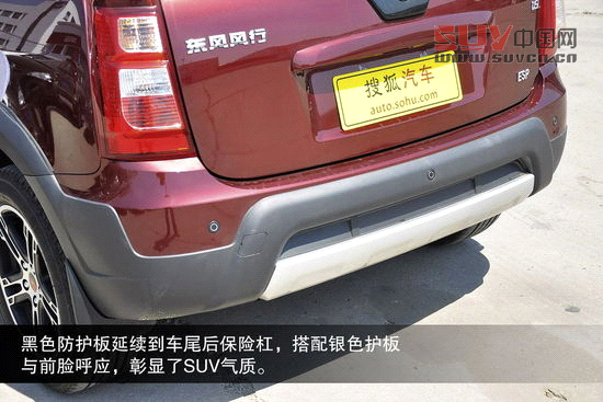 尾部依舊保持著景逸的家族風格,但細節處的更改加強了SUV的韻味。尾燈采用垂直設計,非常醒目,內部使用LED光源,夜晚點亮后效果十分出色。黑色防護板延續到車尾后保險杠,搭配銀色護板與前臉呼應,彰顯了SUV氣質。