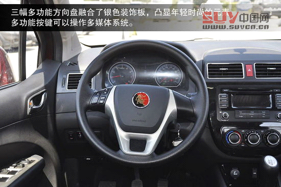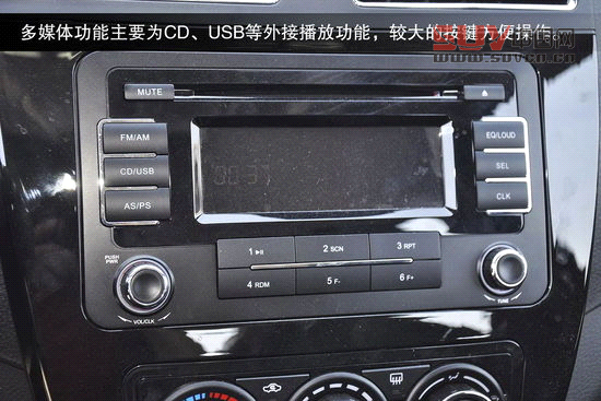 多媒體功能主要為CD、USB等外接播放功能,全系手動空調的配置無可厚非,三圓式的操控方式很容易上手。景逸X5配置了USB接口,方便外部音源的接駁。