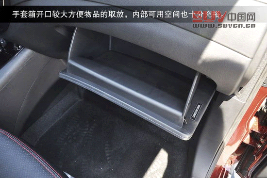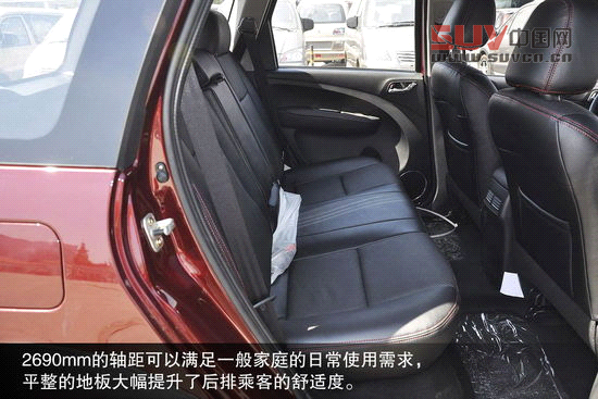 黑色皮革座椅搭配上紅的縫線,看上去很動感。但實際乘坐感覺略微偏硬,并且在包裹性方面也并不好。2690mm的軸距可以滿足一般家庭的日常使用需求,平整的地板大幅提升了后排乘客的舒適度。