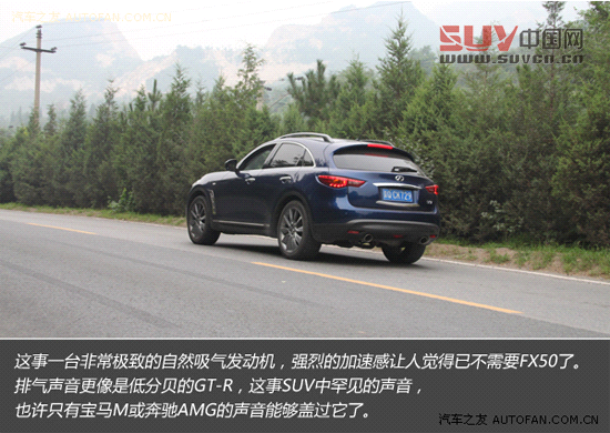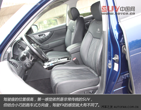為了提供跑車版敏捷、直接的操控,英菲尼迪FX37采用了相當激進的調教方案,可能有人會覺得這樣的設定容易令人緊張,在我看來,如果你熱衷于駕駛,喜歡SUV的安全、視野和雄偉,同時又不放棄對高階駕駛體驗的追求,那么FX就是一款非常合適的車型。