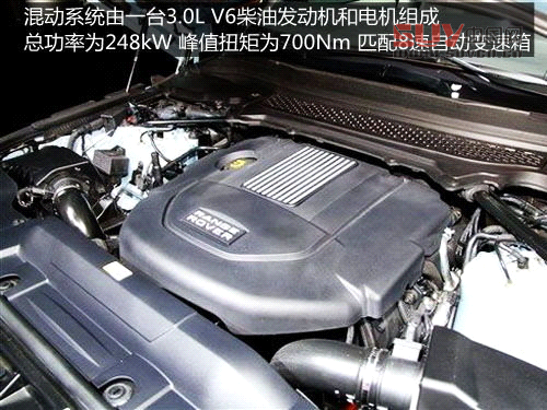 路虎推出的混合動力版本攬勝車型搭載了3.0L SDV6柴油發動機,這也是市場上第一款采用柴電混合動力的高端SUV。電動機最大輸出功率35kW。兩套動力系統協同工作最大輸出功率在250kW,最大輸出扭矩700Nm,百公里加速時間6.9s,最高車速218km/h。