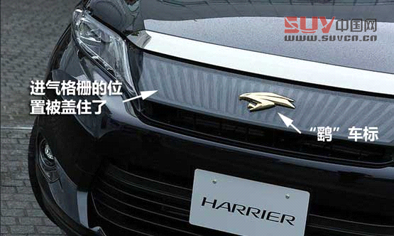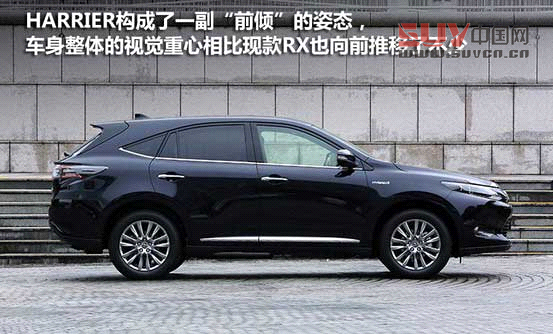 雖然整體上HARRIER和現款RX具備幾乎相同的外形輪廓,但其營造的視覺效果已經絕非現款RX能與之相比的了。多層次的車頭立體造型為HARRIER賦予了完全不同以往任何日系SUV的風格,進氣格柵的下移為車頭增添了很多裝飾件,也更能突出HARRIER全新“鷂”車標的存在感。