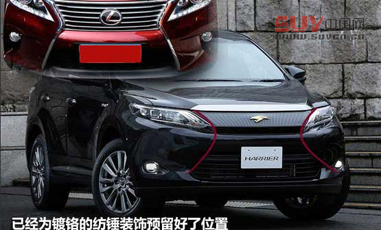 參考雷克薩斯近年來所使用的“紡錘”式的車頭,在新一代RX上,雷克薩斯應該也會部分修改HARRIER的設計,畢竟大燈之間的位置已經為鍍鉻的紡錘裝飾預留好了位置,當然也有一種可能是未來的RX放棄紡錘造型。