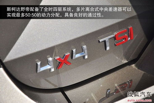 斯柯達野帝配備了全時四驅系統,多片離合式中央差速器可以實現最多50:50的動力分配,具備良好的通過性。