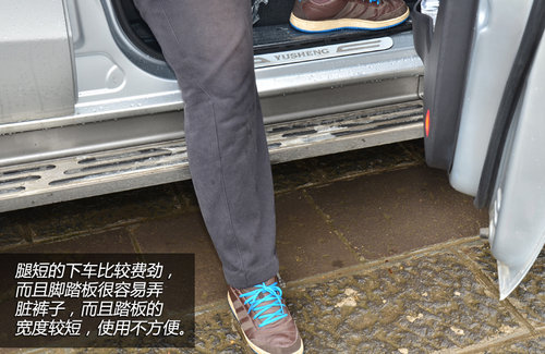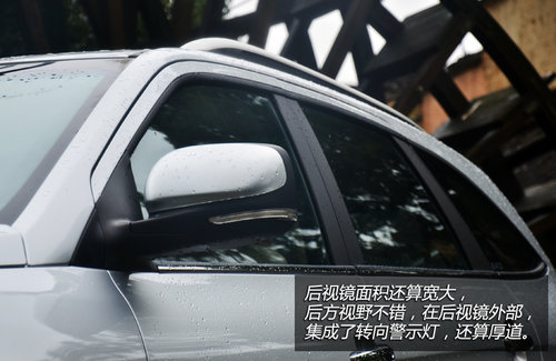 車身側面造型亮點不多,線條還算比較和諧吧,亮銀的行李架比較好看,但實際用途不大。車窗所占的側面比重較小,稍有點顯得失重。四個車輪顯得很粗獷,輪胎品牌是瑪吉斯,成本并不是很高,這組輪胎胎面有四道寬溝設計,注重排水性能,但輪胎的特點決定了高速行駛時舒適性較差。
