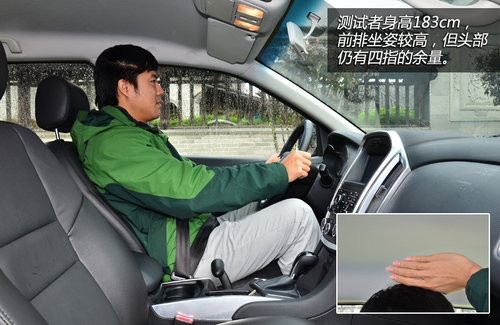 乘坐空間方面,前排的坐姿比較高,并且副駕駛席無法調節座椅的高低,使乘客感覺不是很舒適。頭部空間比較理想,后排的座椅靠背支持角度調節,能夠給長途駕駛帶來更多的舒適性體驗。縱向腿部空間也比較理想,但在這款頂配車型上,沒有天窗,實在是有些說不過去。