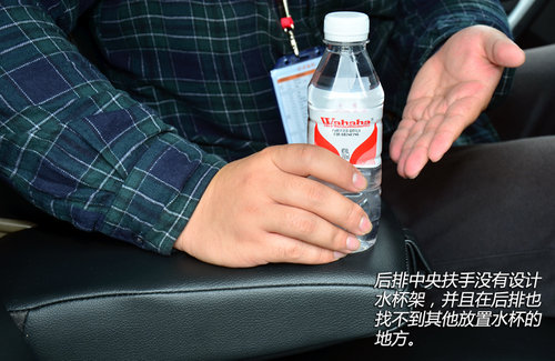 后排中央扶手上沒有水杯架的設計,并且在后排的其它位置也找不到放置水杯的地方。后排座椅可四六比例放倒,后備箱內部比較規整,但后排座椅放倒后,并不能放平。稍稍有礙實用性。