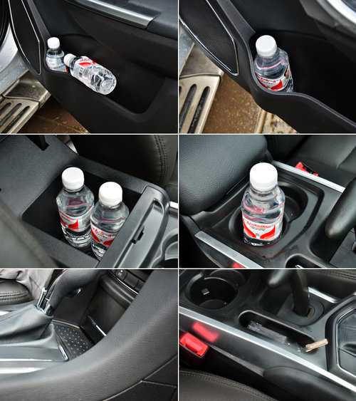儲物空間方面,這款馭勝的設計還是比較不錯的,在前排和后排都有足夠的細節體現。排擋桿前有一塊專門設計放置手機的小平臺,并且加入了防滑設計。車鑰匙和水杯都能夠有恰當的放置位置。車門上可放置一瓶水,也足夠用了。