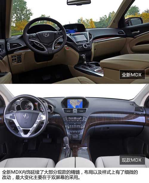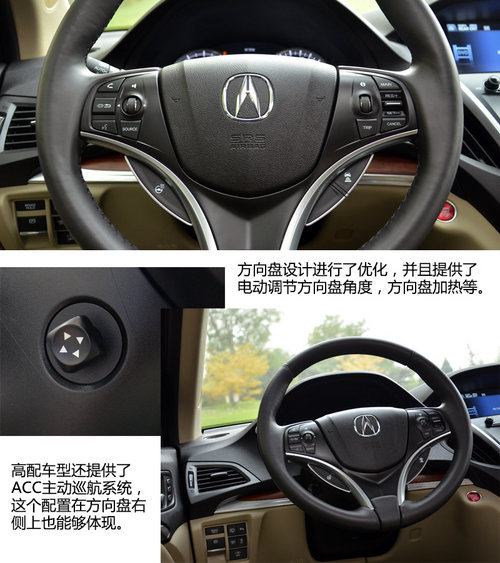 _ueditor_page_break_tag_全新MDX內(nèi)飾延續(xù)了大部分現(xiàn)款的精髓,布局以及樣式上有了細(xì)微的改動(dòng),最大變化主要在于雙屏幕的采用。還在這里值得一提的是,全新MDX將現(xiàn)款的仿桃木內(nèi)飾徹底更換成純實(shí)木材質(zhì)。方向盤設(shè)計(jì)進(jìn)行了優(yōu)化,并且提供了電動(dòng)調(diào)節(jié)方向盤角度,方向盤加熱等。高配車型還提供了ACC主動(dòng)巡航系統(tǒng),這個(gè)配置在方向盤右側(cè)上也能夠體現(xiàn)。