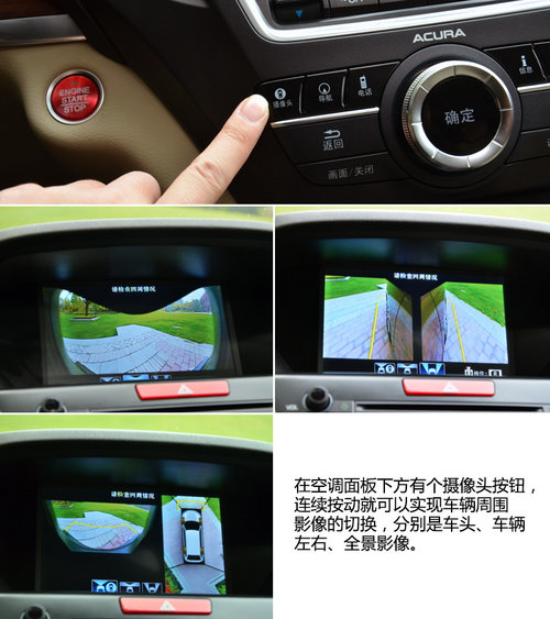 儀表設(shè)計(jì)中規(guī)中矩,但這樣也不影響它給你帶來的豪華感。雙屏幕設(shè)計(jì)可以用現(xiàn)在流行語來形容就是“高端大氣上檔次”,上面8寸液晶屏主要負(fù)責(zé)導(dǎo)航,車身影像呈現(xiàn),而下面的7寸觸摸屏主要是空調(diào)、娛樂系統(tǒng)的控制。對(duì)于這個(gè)級(jí)別的車來說,藍(lán)牙播放歌曲自然不是什么新鮮事,不過雙屏幕帶來的好處在于上面的屏幕導(dǎo)航,下面的屏幕可以單獨(dú)操作歌曲,兩個(gè)屏幕互不影響,這個(gè)設(shè)計(jì)還是非常不錯(cuò)的。在空調(diào)面板下方有個(gè)攝像頭按鈕,連續(xù)按動(dòng)就可以實(shí)現(xiàn)車輛周圍影像的切換,分別是車頭、車輛左右、全景影像。