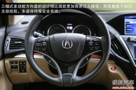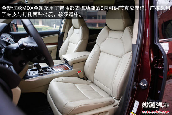全新謳歌MDX全系采用了帶腰部支撐功能的8向可調節真皮座椅,座椅采用了站皮與打孔兩種材質,軟硬適中。