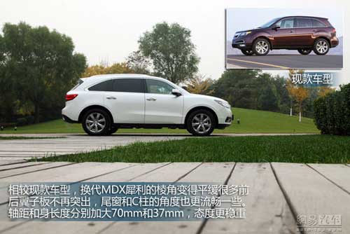 造型部分側面摒棄了現款見棱見角的犀利路線,轉而在原有的線條走向上進行了柔化處理,保留一定量的運動基因,同時在視覺感受上平和了一些。不過通過輪轂、門把手以及后視鏡的造型部分可以明確體現,MDX依舊還是擁有區別于其他豪華SUV更多的男性基因,雄性荷爾蒙隱隱的從細節處滲透出來。