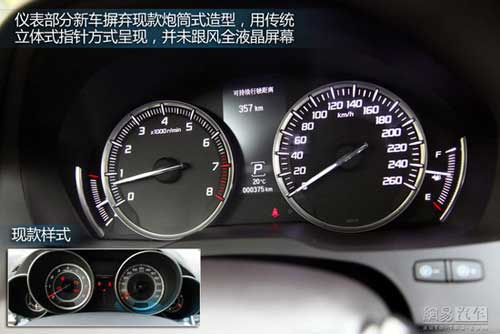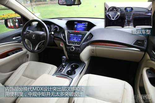 儀表盤化繁為簡,從現款的炮筒樣式簡化成立體指針樣式,功能顯示更直觀,讀取數據更輕松。新車沒有跟風采用全液晶儀表,僅僅是在中央的部分加入小尺寸功能屏幕。換代MDX加入了ACC自適應巡航系統,安全性和便利度都得到了明顯提高。