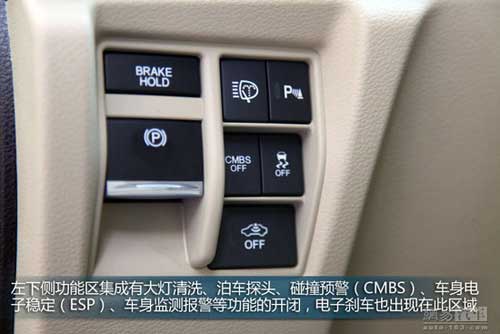 方向盤部分新車換用全新的三幅家族樣式,造型運動功能全面。左右按鍵分別為音控和功能控制兩大塊,左側以滾動加左右方向混搭的控制小按鈕設計的很人性化很有個性;右側按鍵可實現駕駛者對車輛狀況的了解及控制。同時碰撞預警系統也出現在配置當中,與時俱進。
